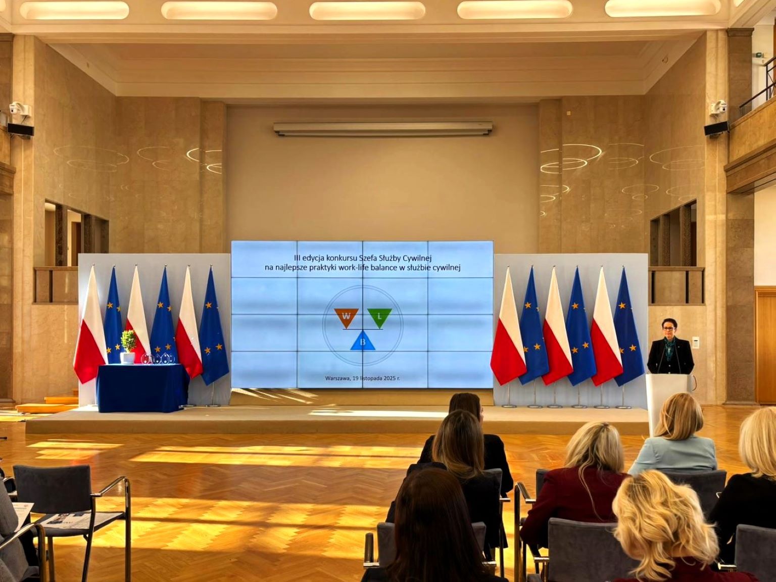 W dniu 19.11.2025 r. odbyła się finałowa gala III edycji konkursu na najlepsze praktyki work-life balance w służbie cywilnej. Udział w niej, na zaproszenie Kancelarii Prezesa Rady Ministrów wzięli Powiatowy Inspektor Nadzoru Budowlanego w Krakowie – Powiat Grodzki – Małgorzata Boryczko wraz z zastępcą Przemysławem Ziębaczem.